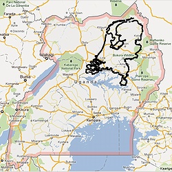 Oeganda ligt in het oosten van Afrika en is zeven keer groter dan Nederland. Kampala is de hoofdstad van het land en ligt dicht bij het Victoria meer. Buurlanden van Oeganda zijn Soedan, Kenia, Tanzania, Rwanda en Congo. Het land ligt midden op de evenaar en heeft daarom een tropisch klimaat met twee droge seizoenen. Het landschap bestaat voornamelijk uit plateaus en bergen en is erg groen te noemen. Op sommige plekken in Oeganda valt dan ook wel meer dan 2100 mm. neerslag per jaar. De temperatuur ligt voor het grootste deel van het jaar boven de 30 graden Celsius.