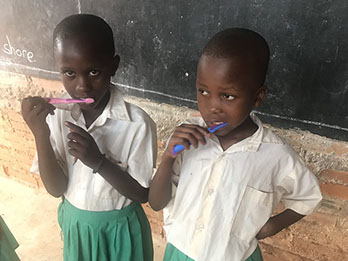 In april 2019 is een start gemaakt met Wash & Smile op de St. Kizitoschool in Kampala en bij de Happy Tootto’s in Maya. Op beide scholen is in twee klassen de poetsles gegeven. Er zitten gemiddeld 80 leerlingen in een klas, dus flink wat kinderen hebben een eigen tandenborstel gekregen. Bij het poetsen werd direct zichtbaar dat bij veel kinderen het gebit er slecht aan toe was.